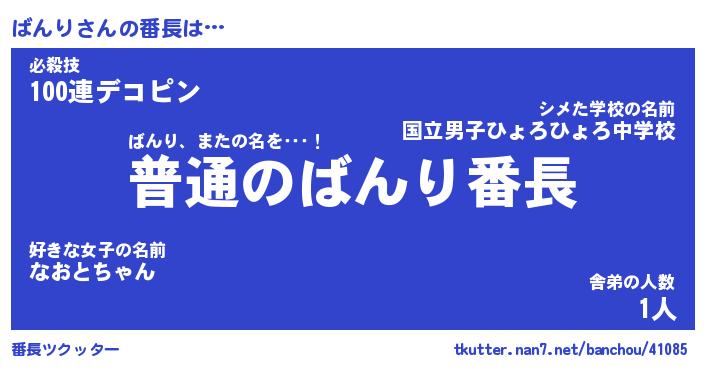 | ヘコむあだ名 | 『ばんにー』『つくし』『ばん太郎』 |