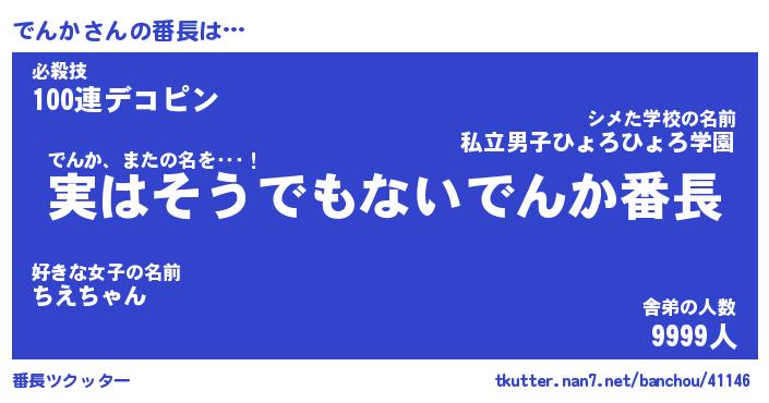 | ヒーロー風カッコイイあだ名 | 『スーパーデンカ』『ウルトラでんかマン』 |