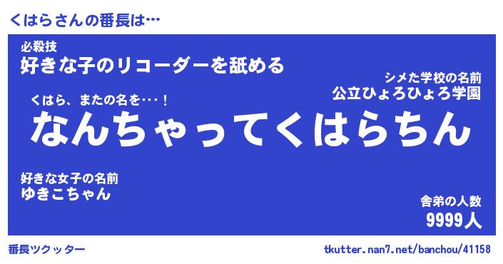 | 伝説のあだ名 | 『伝説のスナイパーくはら』 |