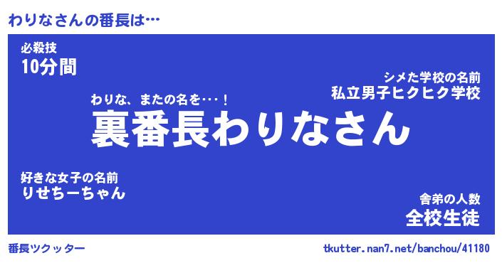 | 2回繰り返すあだ名 | 『わりわり』『わわりり』『うねうね』 |
