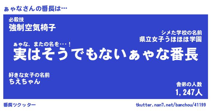 | ヒーロー風カッコイイあだ名 | 『スーパーァャナ』『ウルトラぁゃなマン』 |