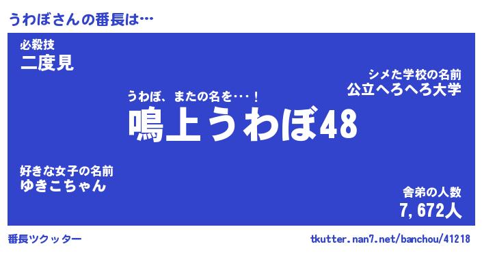 | ヘコむあだ名 | 『うわにー』『牛乳』『うわ太郎』 |