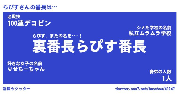 | ヘコむあだ名 | 『らぴもー』『つくし』『らぴっぺ』 |