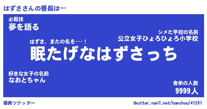 | ヒーロー風カッコイイあだ名 | 『スーパーハズサ』『ウルトラはずさマン』 |