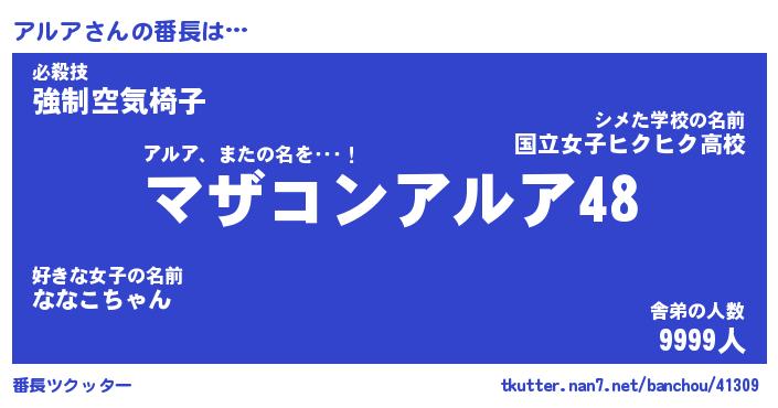 | ヒーロー風カッコイイあだ名 | 『スーパーアルア』『ウルトラアルアマン』 |