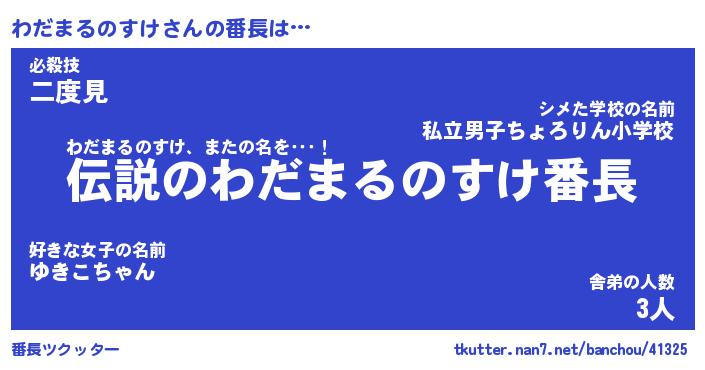 | 肩書あだ名 | 『わだまるのすけ御曹司』 |