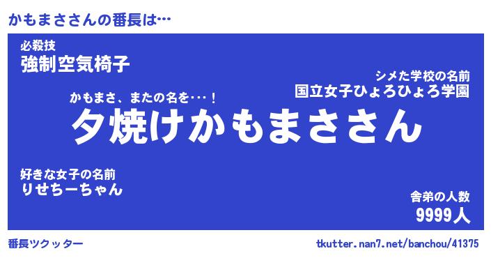 | 欧米人風あだ名 | 『マイケルかもまさ』『ウサインかもまさ』 |