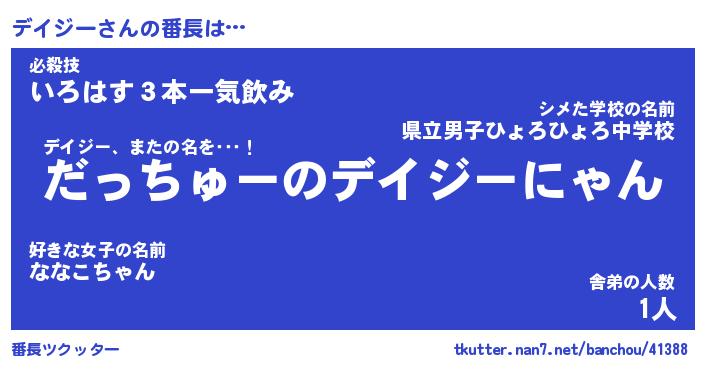 | 意味不明あだ名 | 『ペロリンデイジー』『永久保存デイジー』 |