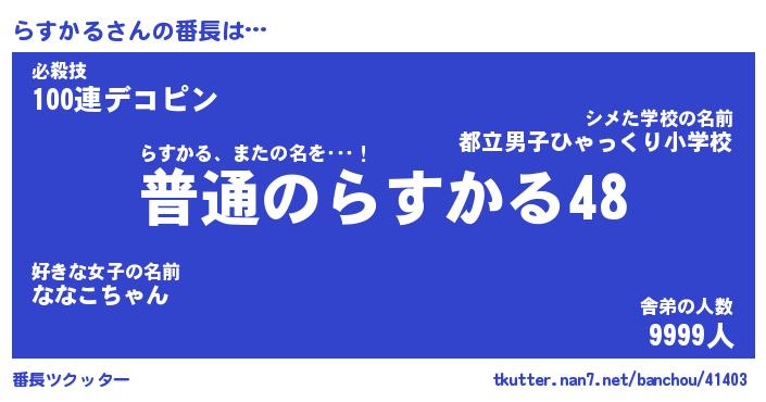 | ヘコむあだ名 | 『らすにゅー』『豆乳』『らすを』 |