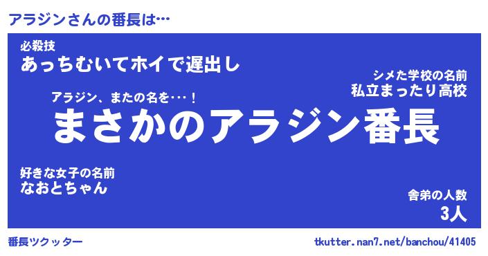 | 欧米人風あだ名 | 『マイケルアラジン』『ウサインアラジン』 |