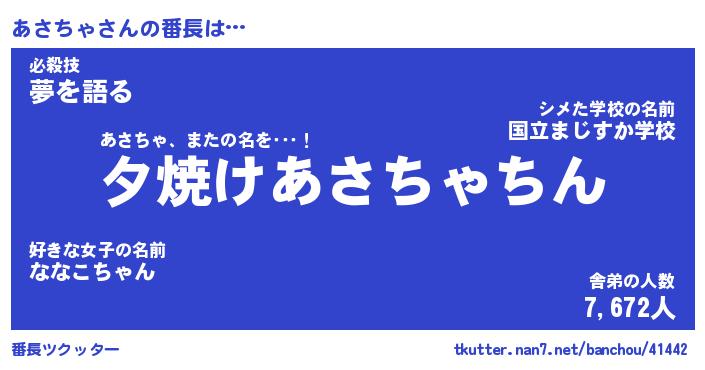 | 肩書あだ名 | 『あさちゃ社長令嬢』『あさちゃ大統領』 |