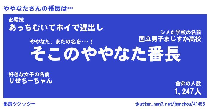 | ヒーロー風カッコイイあだ名 | 『スーパーヤヤナタ』『銀牙騎士ヤヤ』 |