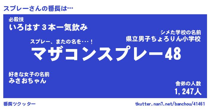 | 意味不明あだ名 | 『ペロリンスプレー』『永久保存スプレー』 |