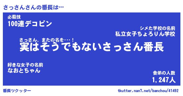 | 意味不明あだ名 | 『ペロリンさっさん』『永久保存さっさん』 |