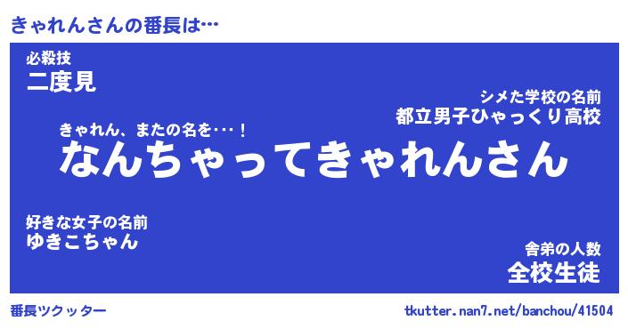 | 男性向けラノベタイトル風あだ名 | 『きゃれんの憂鬱』 |