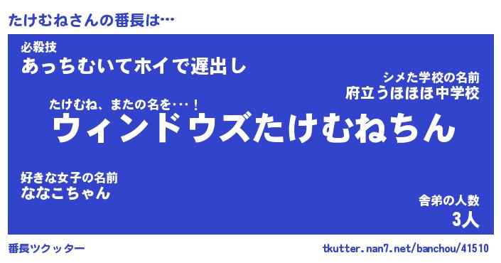 | ポケモン風あだ名 | 『タケチュウ』『タケムダネ』 |