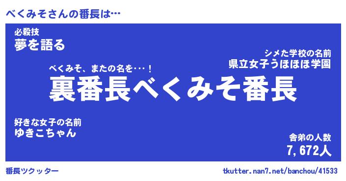 | 2回繰り返すあだ名 | 『べくべく』『べべくく』『ぬるぬる』 |