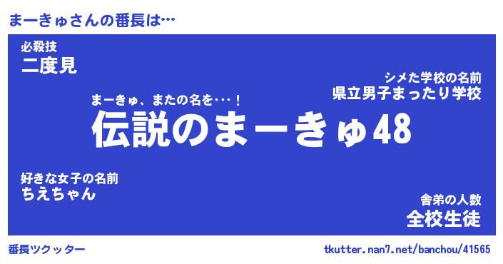 | 肩書あだ名 | 『まーきゅ店長』『まーきゅ国家主席』 |