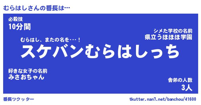 | 意味不明あだ名 | 『ペロリンむらはし』『永久保存むらはし』 |