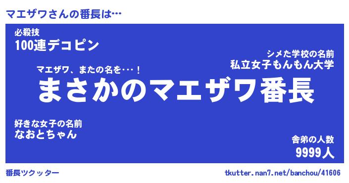 | 意味不明あだ名 | 『ペロリンマエザワ』『永久保存マエザワ』 |