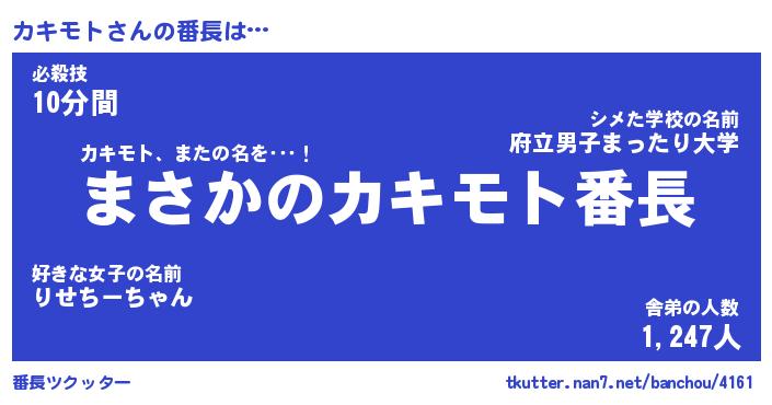 | 伝説のあだ名 | 『伝説のスナイパーカキモト』 |