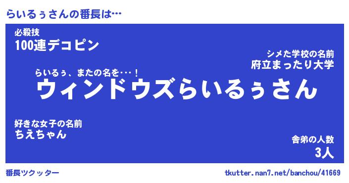 | 肩書あだ名 | 『らいるぅ店長』『らいるぅ総理大臣』 |