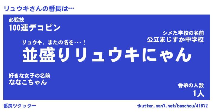 | 意味不明あだ名 | 『ペロリンリュウキ』『永久保存リュウキ』 |