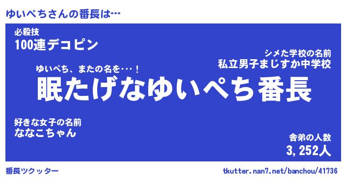 | 欧米人風あだ名 | 『マイケルゆいぺち』『ウサインゆいぺち』 |