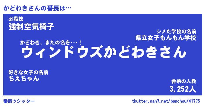 | ファンタジー風あだ名 | 『カドフェル』『エターナルカドワキー』 |