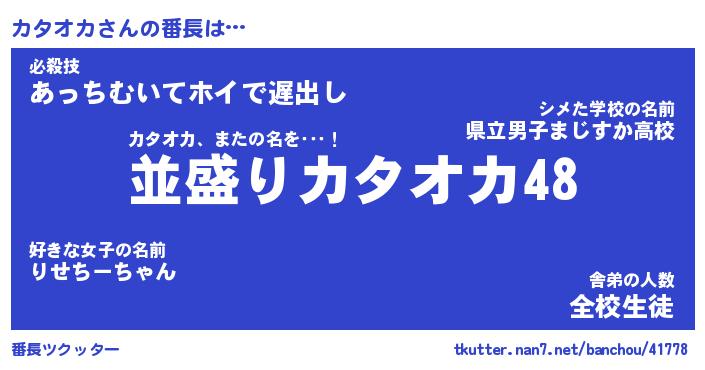 | ヒーロー風カッコイイあだ名 | 『スーパーカタオカ』『暗黒騎士カタ』 |