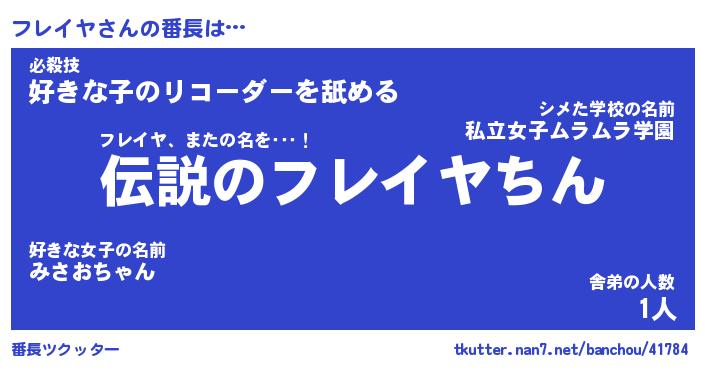 | 意味不明あだ名 | 『ペロリンフレイヤ』『永久保存フレイヤ』 |