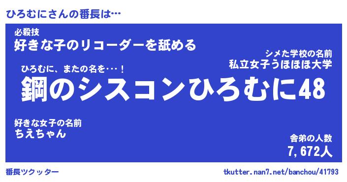 | ポケモン風あだ名 | 『ヒロチュウ』『ヒロムダネ』 |
