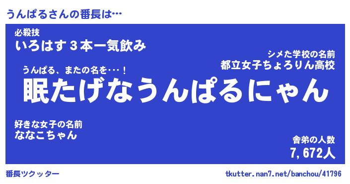 | 意味不明あだ名 | 『ペロリンうんぱる』『永久保存うんぱる』 |