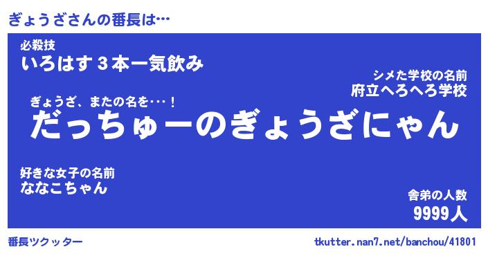 | 胡散臭い通販商品みたいなあだ名 | 『必ず成功する霊験あらたかなお札…その名も「ぎょうざ」』 |