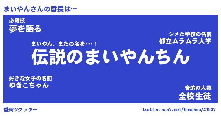 | 肩書あだ名 | 『まいやんCEO』『まいやん総理大臣』 |