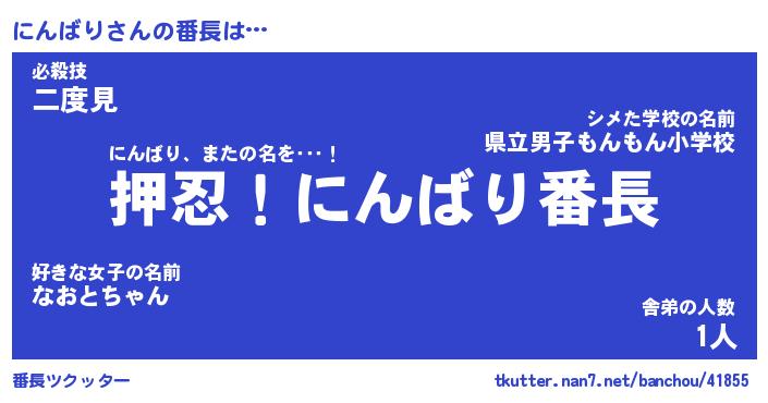 | 意味不明あだ名 | 『ペロリンにんばり』『永久保存にんばり』 |