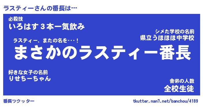 | ヒーロー風カッコイイあだ名 | 『スーパーラスティー』『暗黒騎士ラス』 |