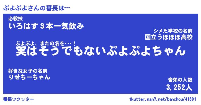 | ヘコむあだ名 | 『ぷよもー』『なまこ酢』『ぷよっ子』 |