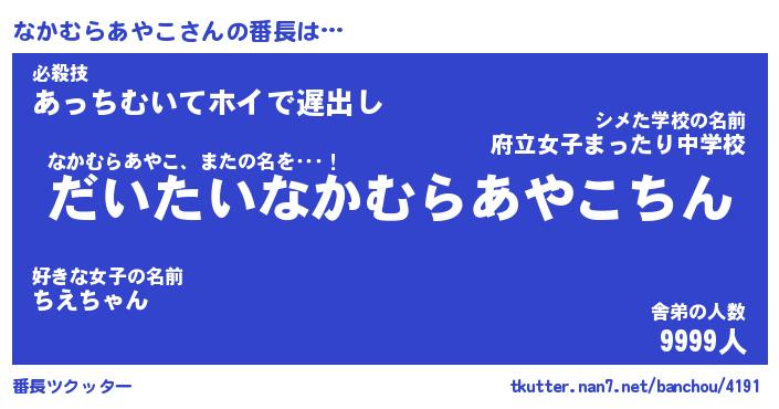 | ヒーロー風カッコイイあだ名 | 『スーパーナカムラアヤコ』 |