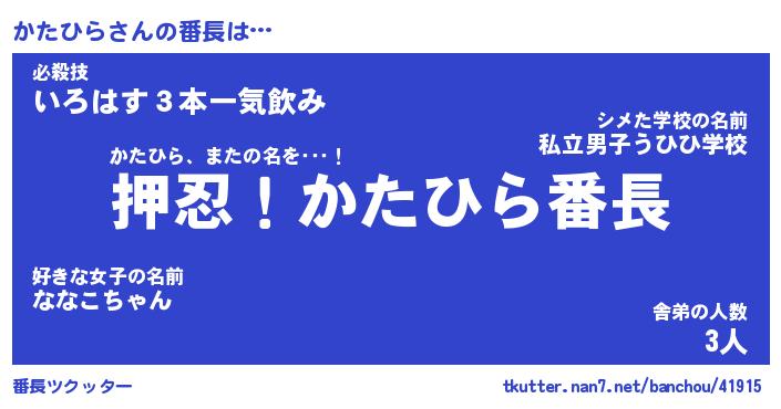 | ヒーロー風カッコイイあだ名 | 『スーパーカタヒラ』『幻影騎士カタ』 |