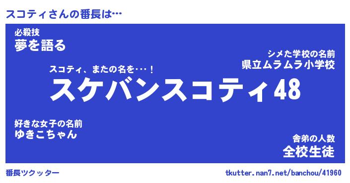 | ヘコむあだ名 | 『スコにー』『牛乳』『スコ太郎』 |