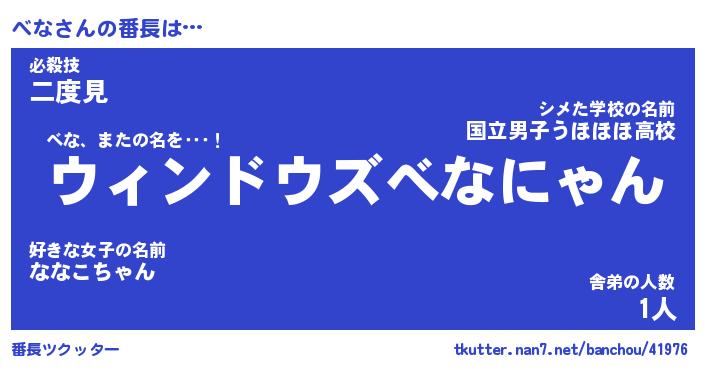 | 伝説のあだ名 | 『伝説のスナイパーべな』 |