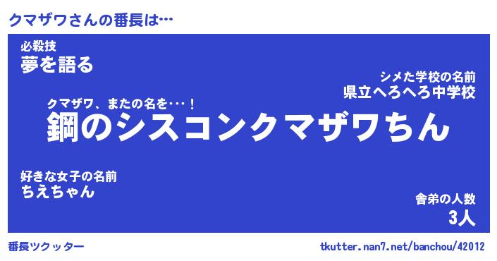 | 肩書あだ名 | 『クマザワ社長』『クマザワ国家主席』 |