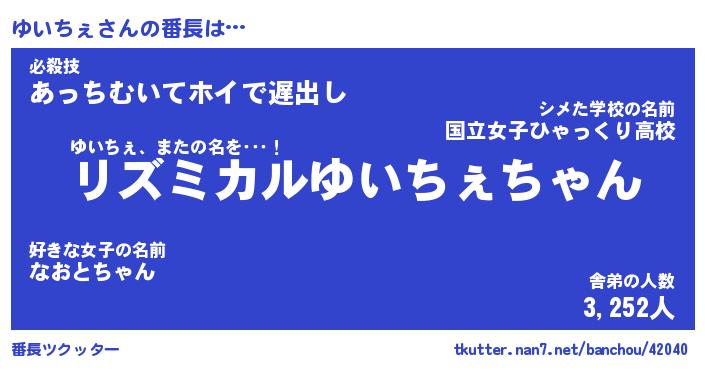 | 意味不明あだ名 | 『ペロリンゆいちぇ』『永久保存ゆいちぇ』 |
