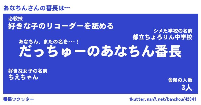 | 肩書あだ名 | 『あなちん社長』『あなちん総理大臣』 |