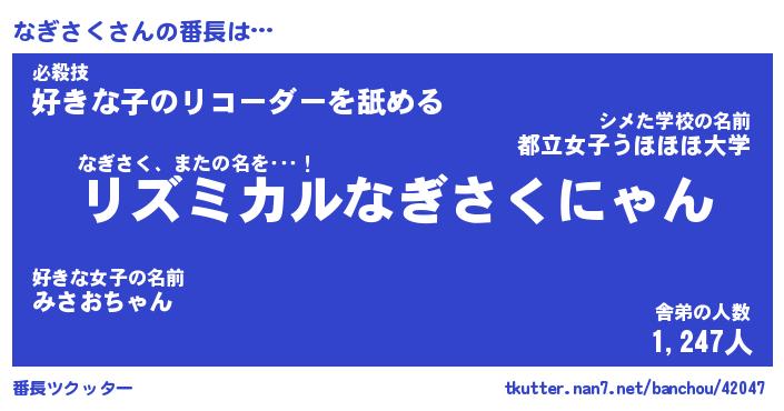 | 肩書あだ名 | 『なぎさく店長』『なぎさく国家主席』 |