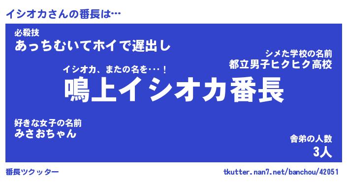 | ファンタジー風あだ名 | 『イシフェル』『エターナルイシオカー』 |