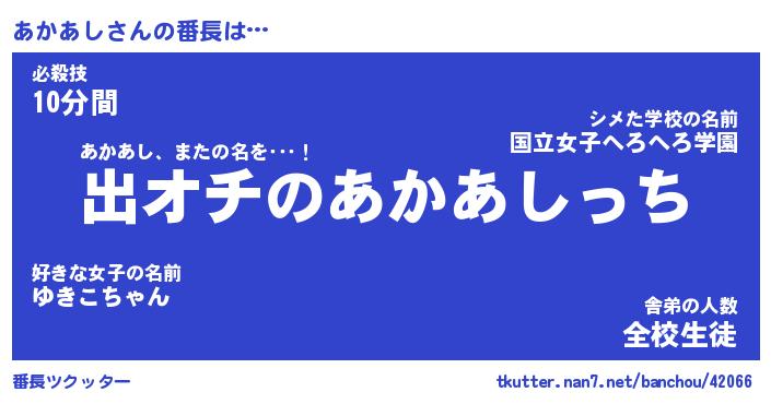 | 伝説のあだ名 | 『伝説のスナイパーあかあし』 |