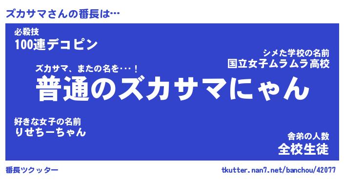 | ヒーロー風カッコイイあだ名 | 『スーパーズカサマ』『暗黒騎士ズカ』 |
