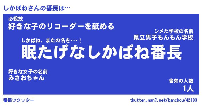 | 2回繰り返すあだ名 | 『しかしか』『ししかか』『ぼろぼろ』 |